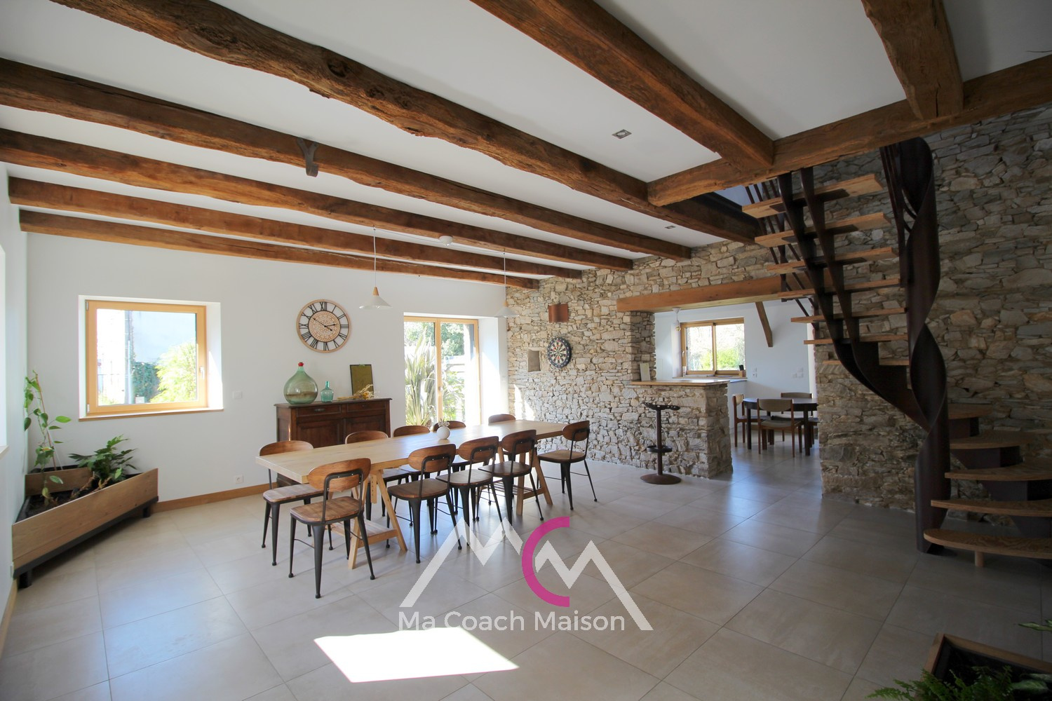 Alliant pierres apparentes, poutres, modernité et espaces paysagés, c'est un coup de coeur assuré !