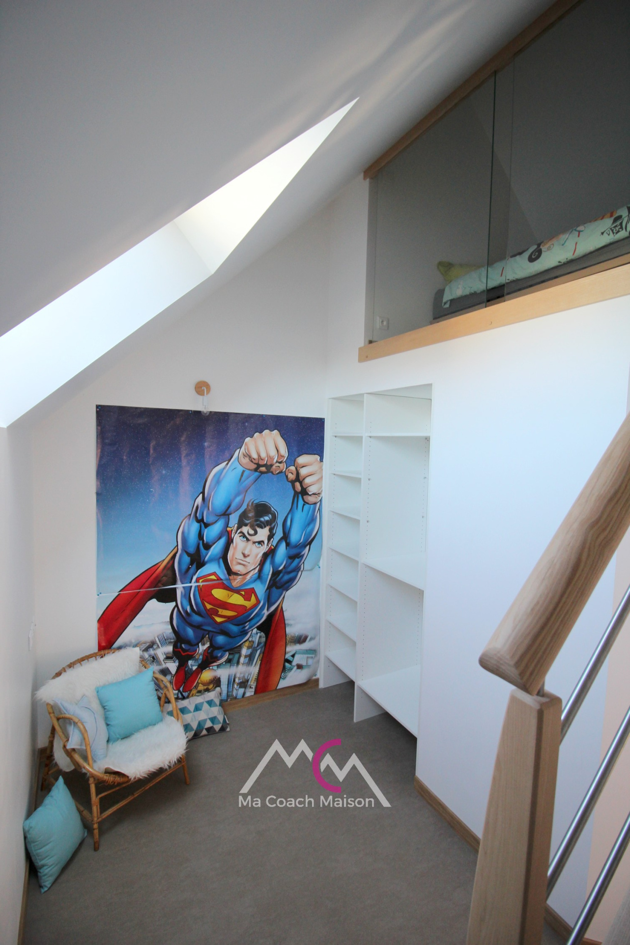 La luminosité est à nouveau au rendez-vous avec cette belle mezzanine permettant selon vos souhaits, d'imaginer un espace bureau ou bibliothèque.