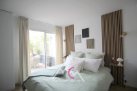 Pour vivre de plain-pied, une suite parentale ouverte sur un patio intime, avec dressing aménagé et salle d’eau privative, vous offre un cocon de confort.