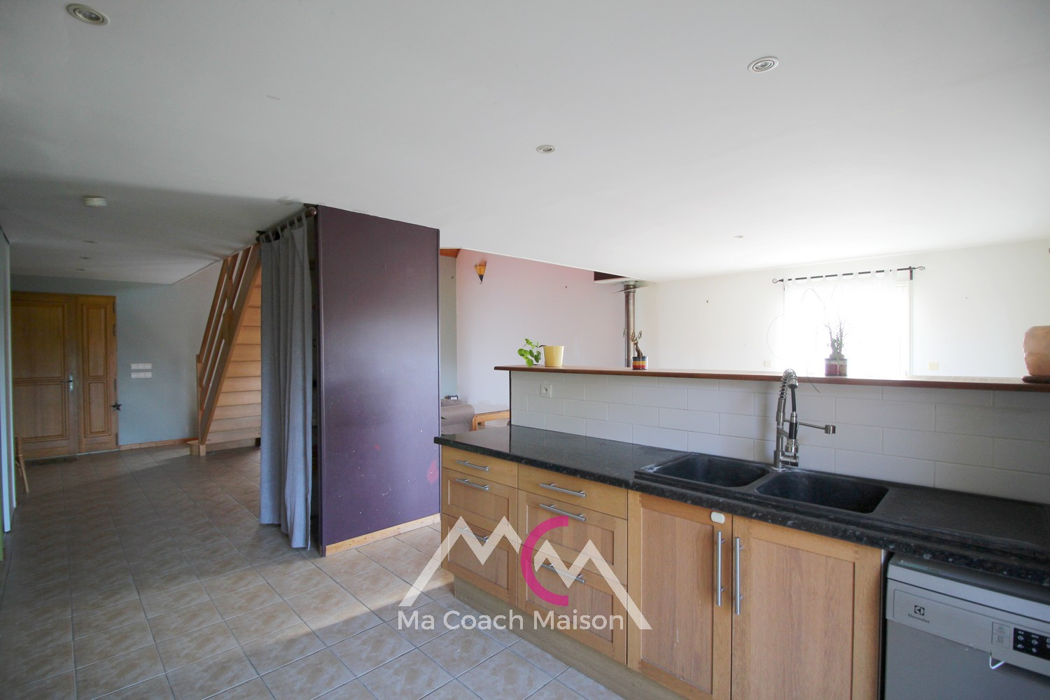 La cuisine ouverte aménagée et équipée, s’intègre harmonieusement à l’espace de vie et dispose d'un accès sur l'extérieur, idéal pour les moments de convivialité en famille ou entre amis.