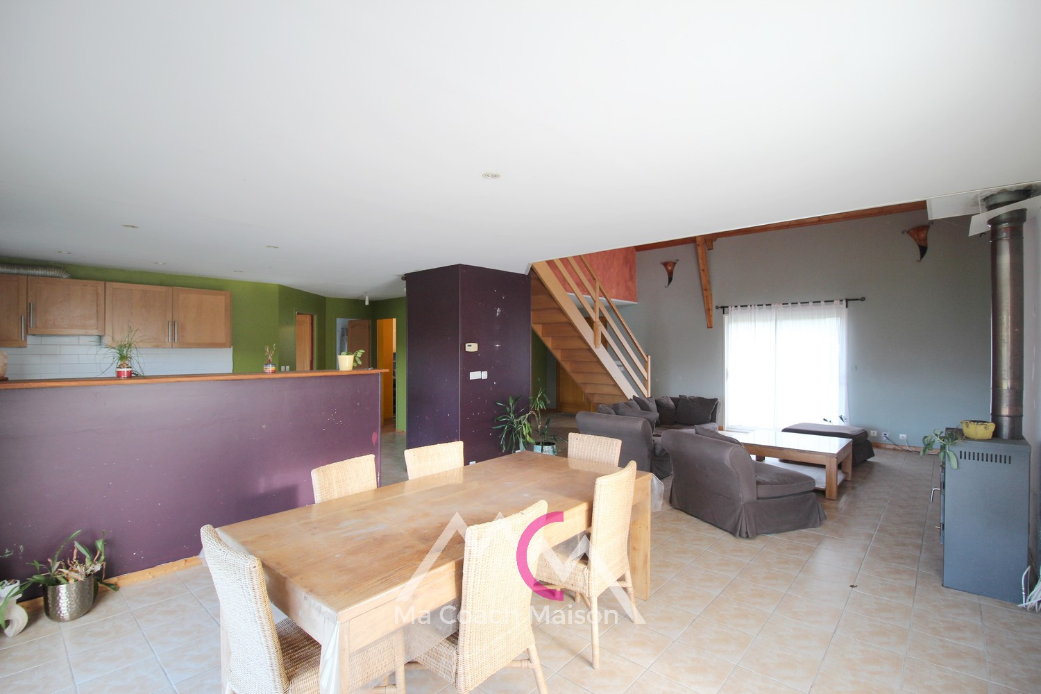 Dès l’entrée, vous découvrirez un spacieux salon-séjour cathédrale d'environ 47 m², baigné de lumière et offrant une atmosphère chaleureuse.