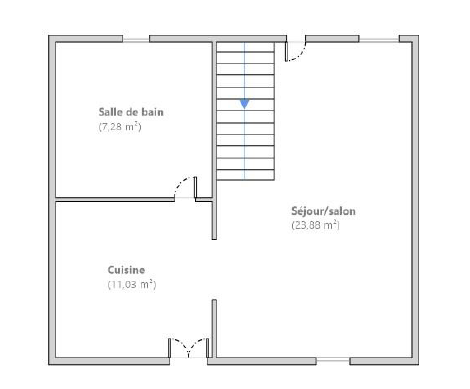 Fonctionnelle et en bon état d'entretien, elle comprend au rez-de-chaussée : une cuisine aménagée, un salon séjour, une salle de bains de 7.28m² avec un wc et un coin buanderie.