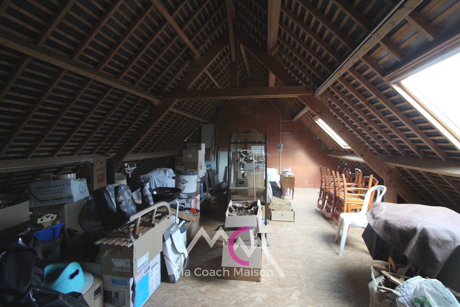 De belles possibilités d’aménagement supplémentaires s’offrent à vous grâce aux combles, dont l’exploitation avait été envisagée par les propriétaires actuels avec la pose de deux Velux et d’une porte en prévision d’un futur accès par escalier extérieur.