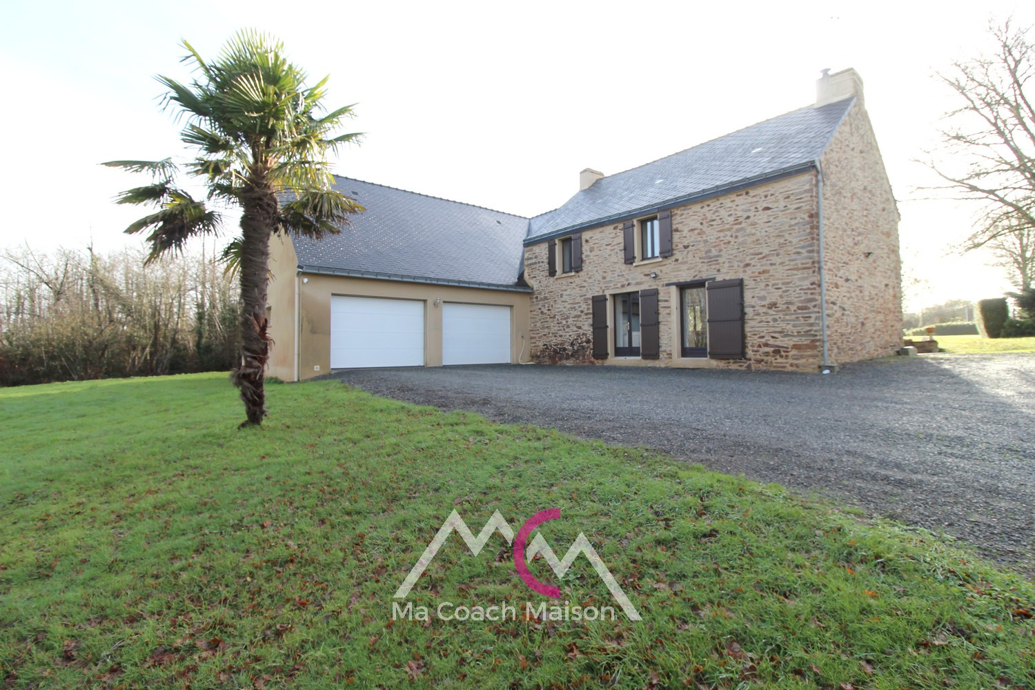 Une buanderie permet l’accès à un double garage de plus de 60 m², équipé de portes sectionnelles motorisées.