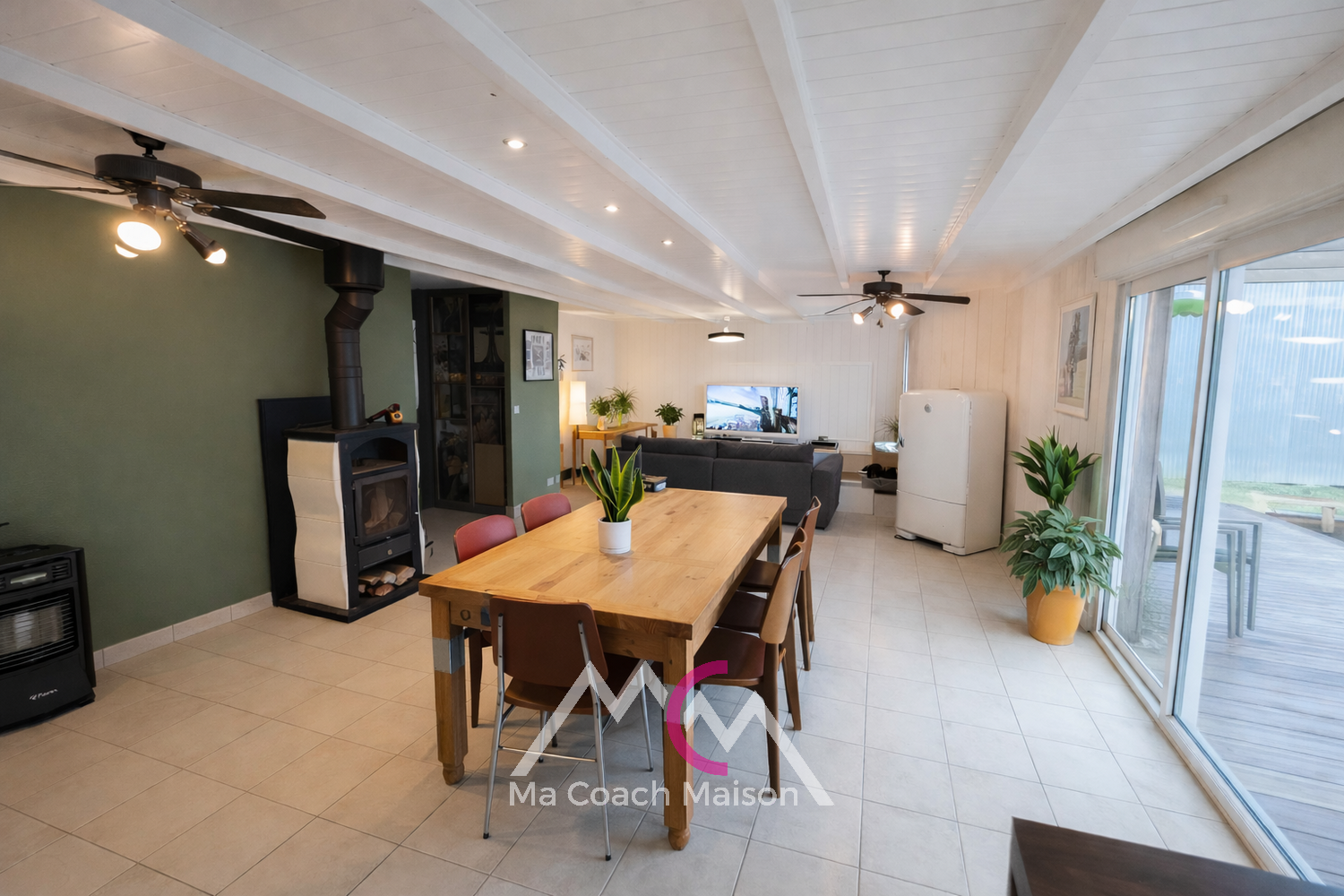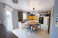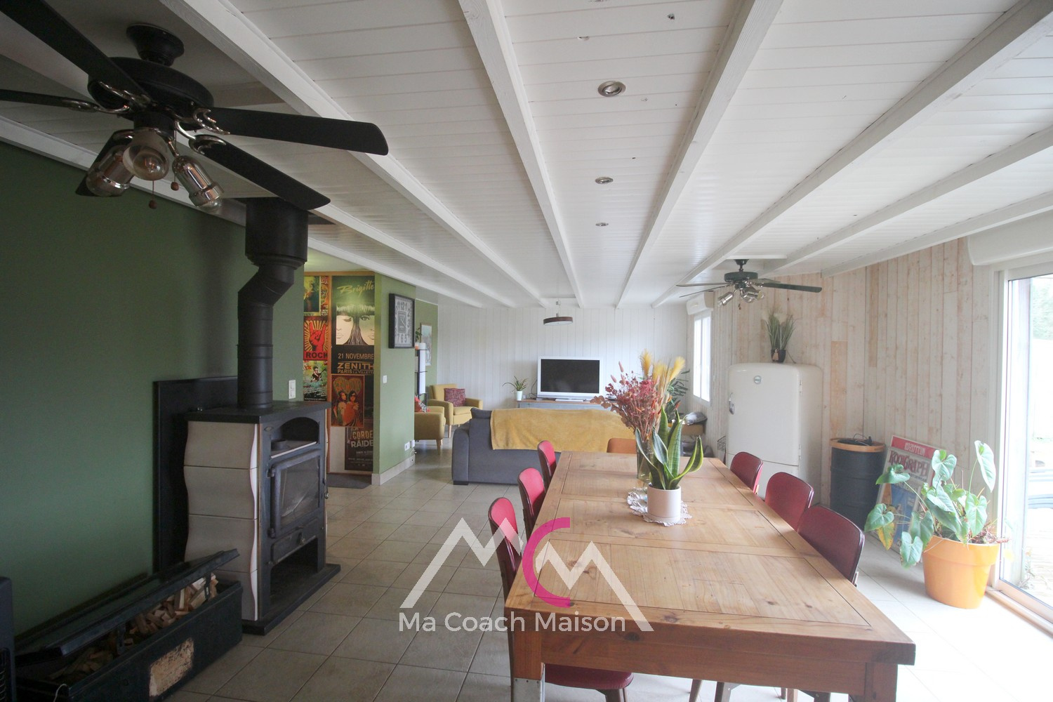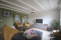 Dès l’entrée, vous découvrirez une pièce de vie lumineuse et conviviale de 48 m2, composée d’un séjour/salon chaleureux agrémenté d’un poêle à bois, et d’une cuisine ouverte entièrement aménagée et équipée, offrant un espace fonctionnel et moderne avec un agréable coin repas.
