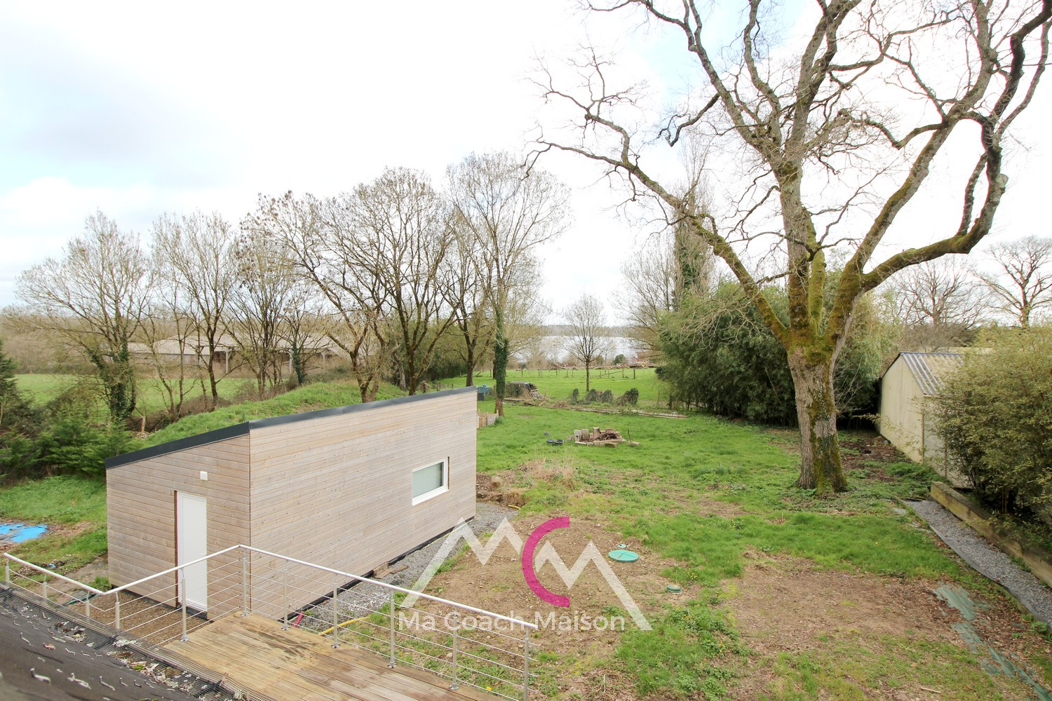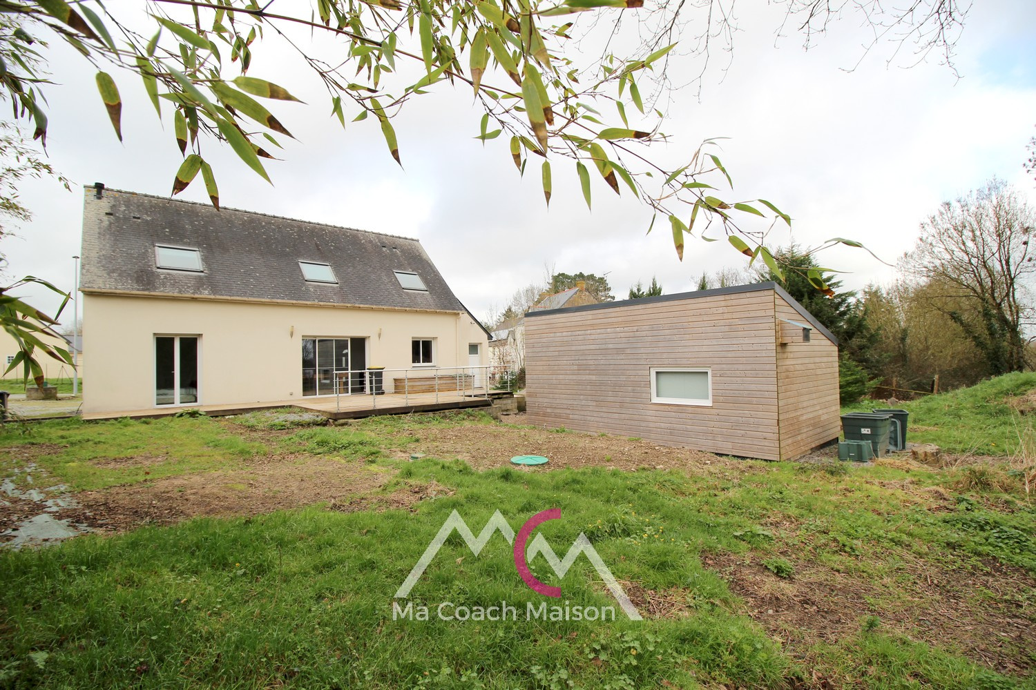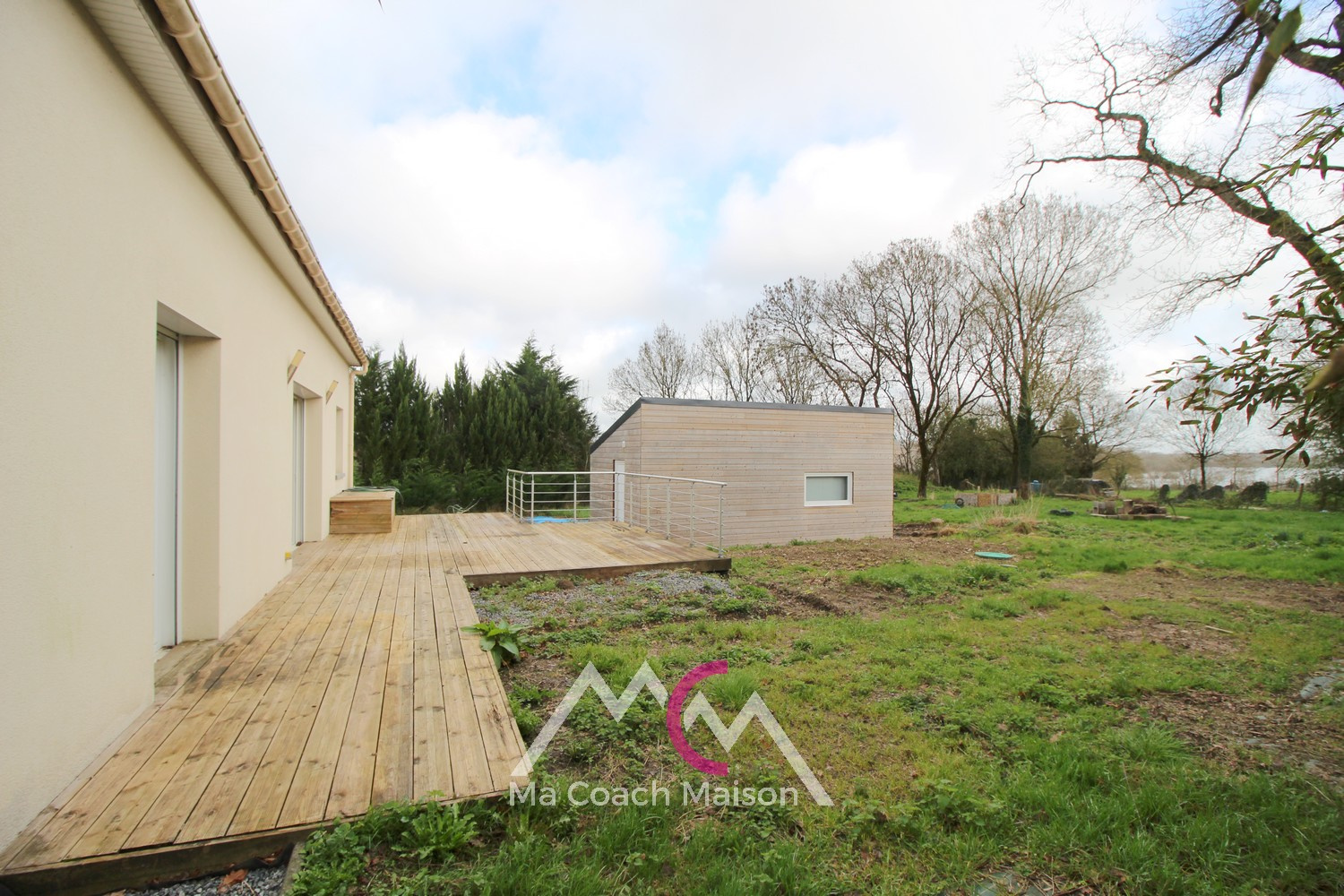 Côté extérieur, vous profiterez d’un jardin à finir d'aménager, agrémenté d’une terrasse en bois d'environ 50m² idéale pour les beaux jours et offrant une vue sur la jardin.