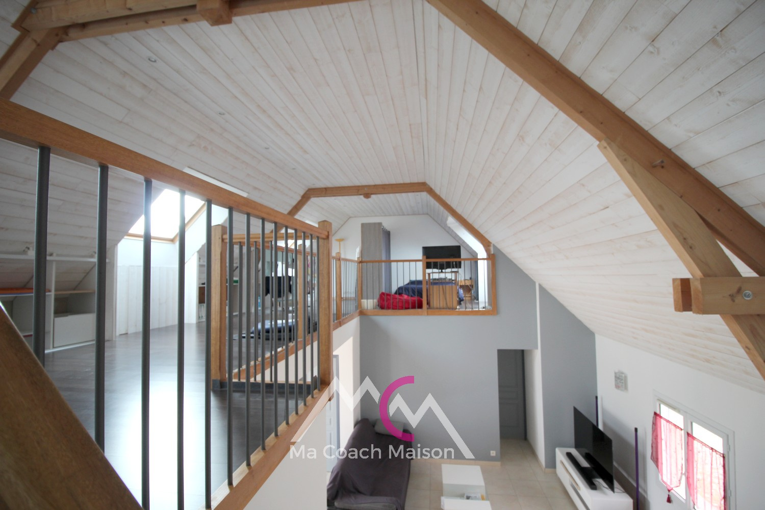 À l’étage, une très belle mezzanine offre un bel espace ouvert pouvant accueillir un bureau, une salle de jeux, ainsi qu'une ou deux chambres selon vos besoins et souhait d'aménagement.