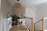 À l’étage, une mezzanine distribue deux chambres, une seconde salle d’eau et un wc.