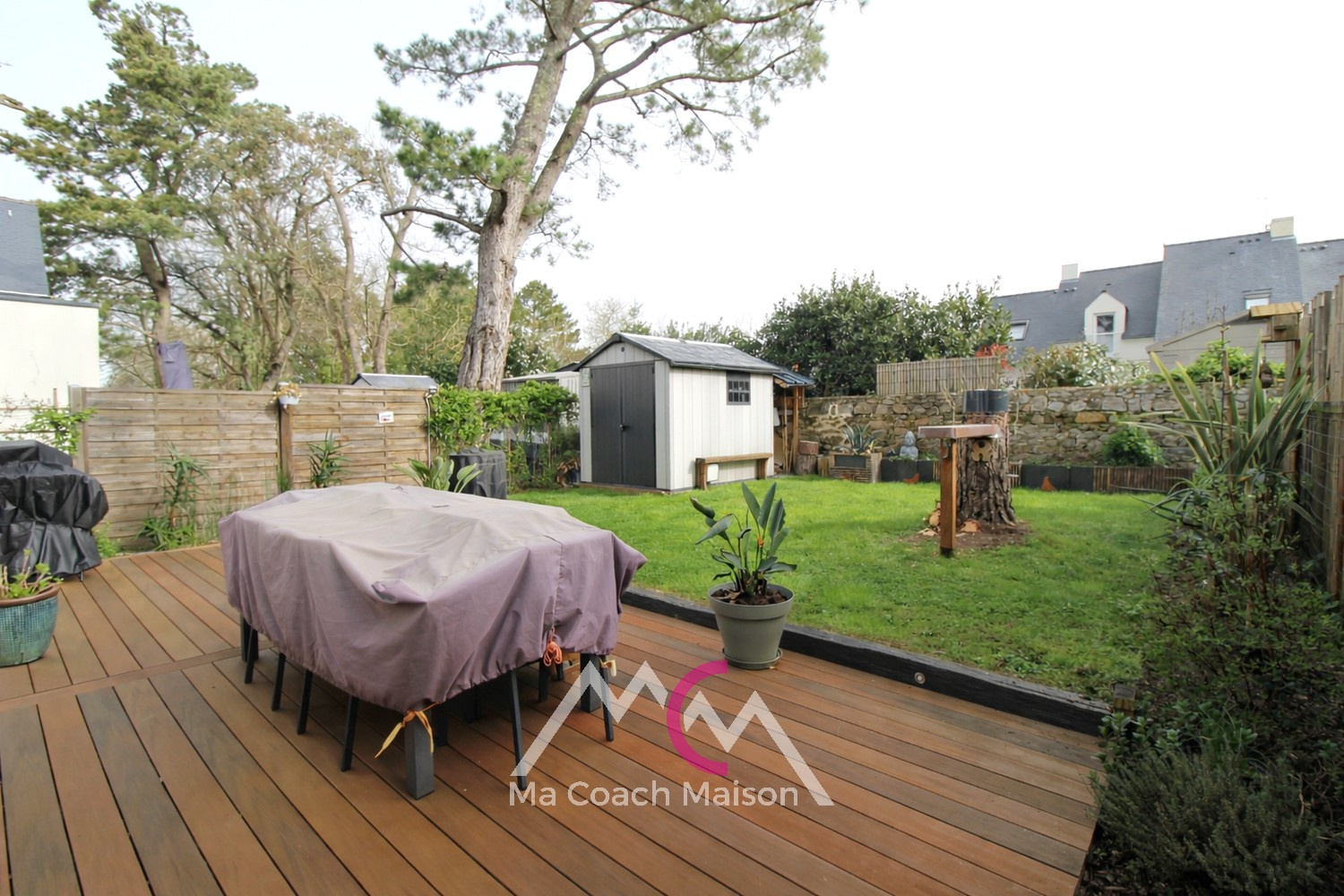À l’extérieur, la maison bénéficie d’un jardin agréable avec une terrasse.