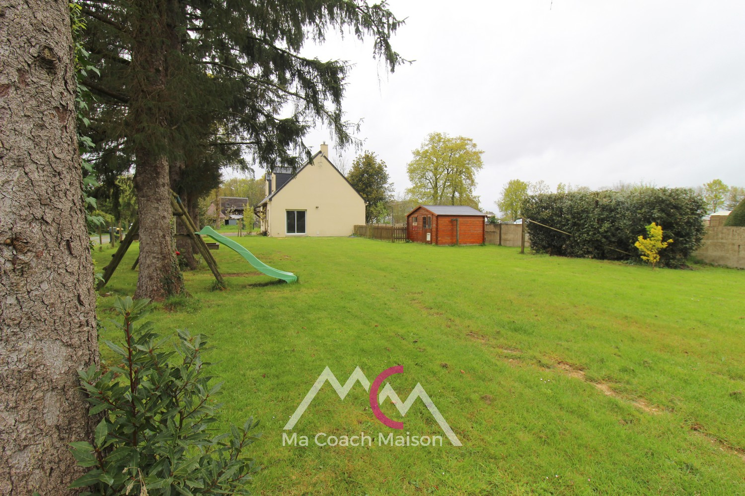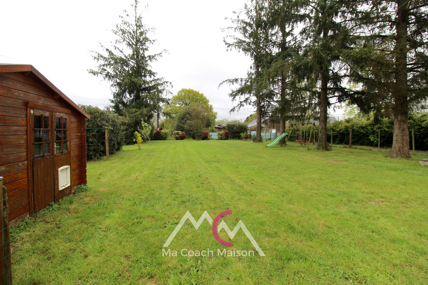 Côté extérieur, vous profiterez d’un jardin arboré avec un chalet bois.